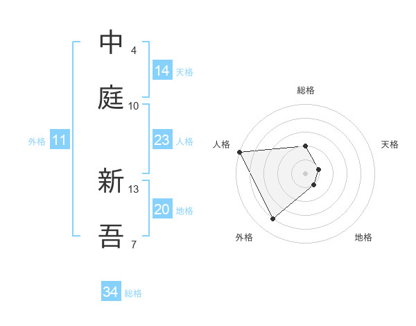 中庭 新吾さんの人格は23画の5点!