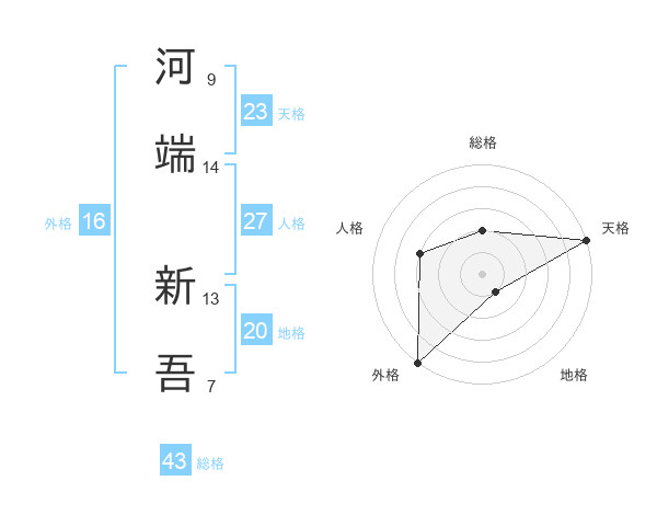 河端 新吾さんの天格は23画の5点!