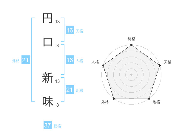 円口 新味さんの天格は16画の5点!