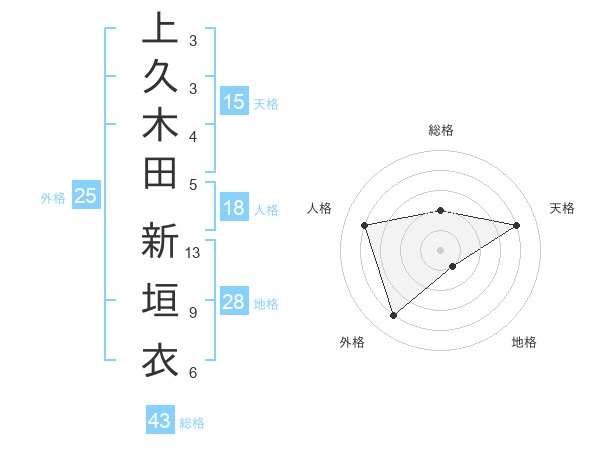 上久木田 新垣衣さんを姓名の画数から五運を鑑定