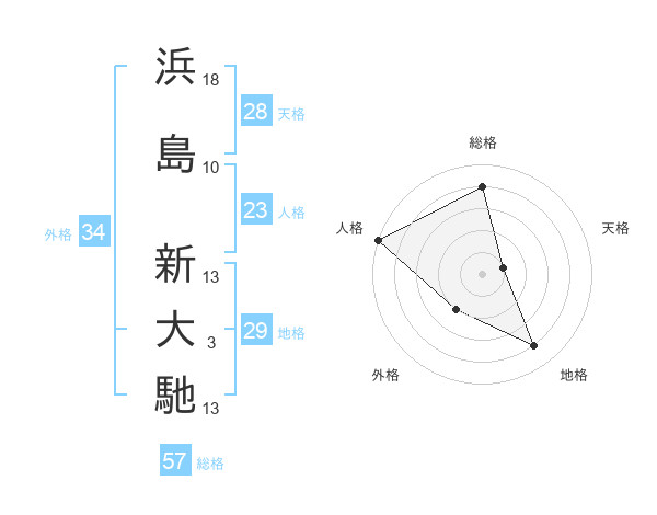 浜島 新大馳さんを姓名の画数から五運を鑑定
