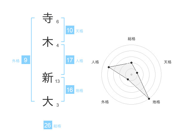 寺木 新大さんの総格は26画の2点!