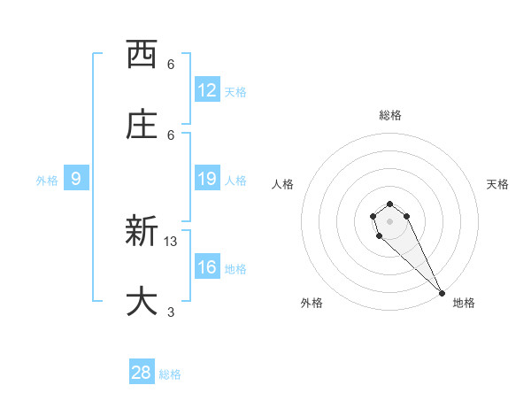 西庄 新大さんの総格は28画の1点!