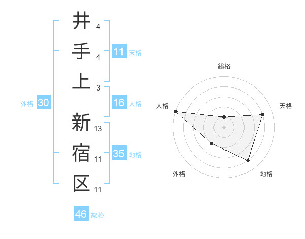 井手上 新宿区さんの総格は46画の1点!
