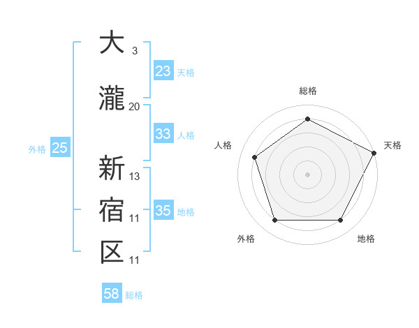 大瀧 新宿区さんを姓名の画数から五運を鑑定