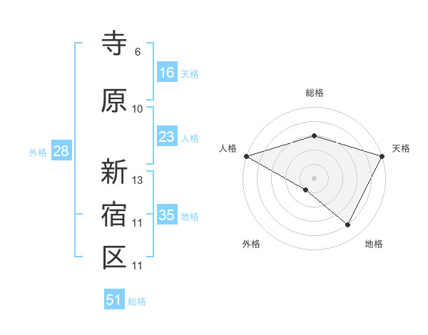 寺原 新宿区さんの総格は51画の3点!