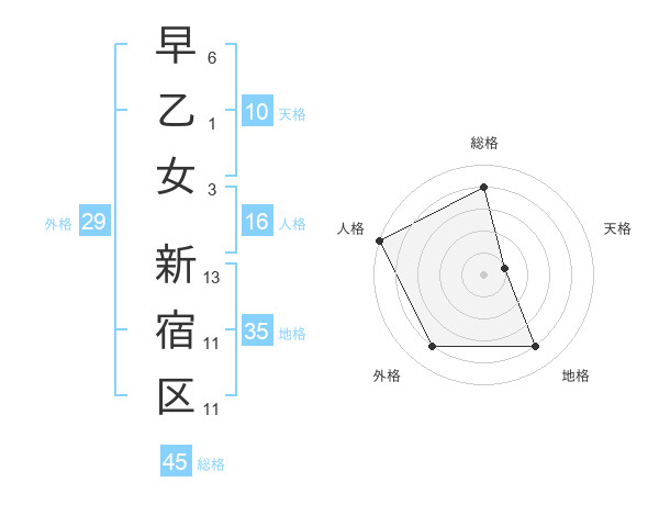 早乙女 新宿区さんの総格は45画の4点!