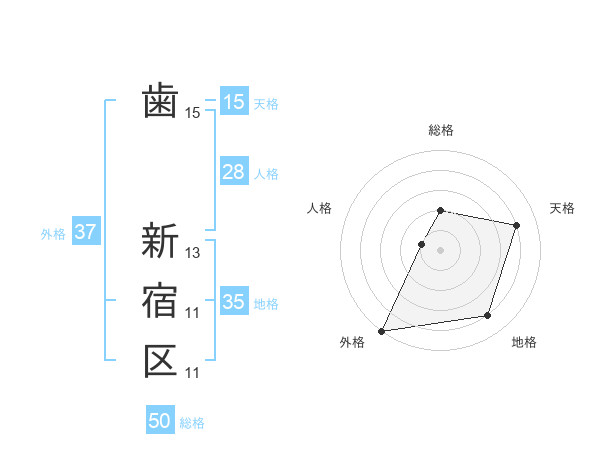 歯 新宿区さんの総格は50画の2点!