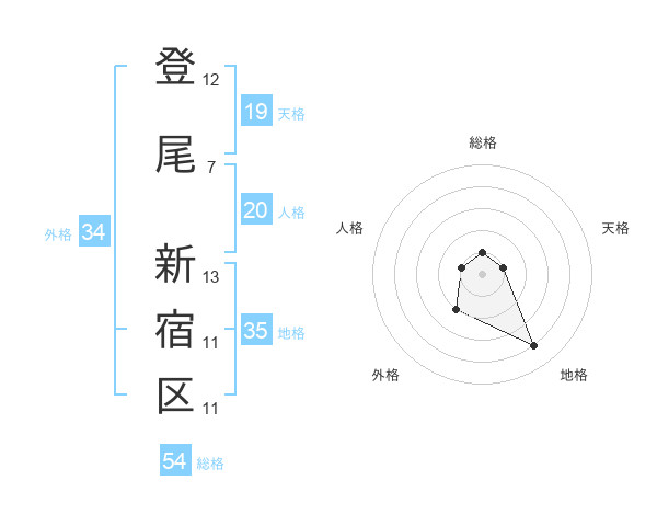 登尾 新宿区さんを姓名の画数から五運を鑑定