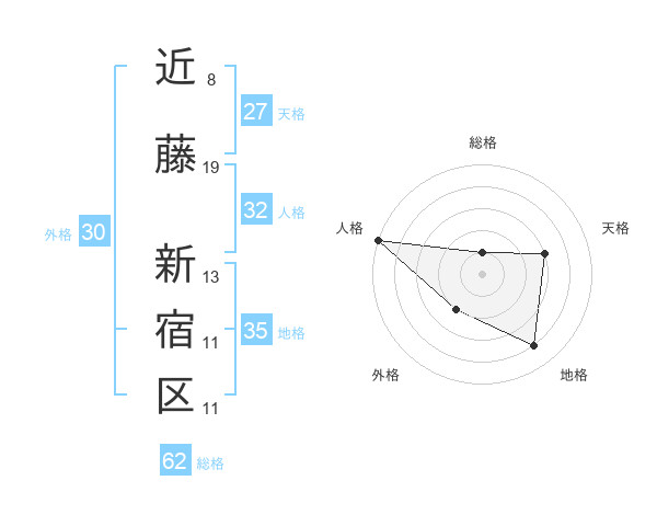近藤 新宿区さんの総格は62画の1点!