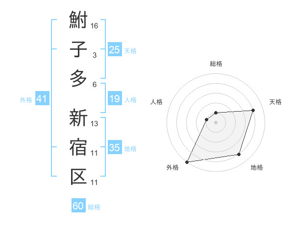 鮒子多 新宿区さんを姓名の画数から五運を鑑定