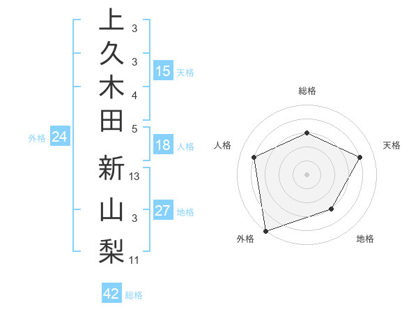 上久木田 新山梨さんを姓名の画数から五運を鑑定