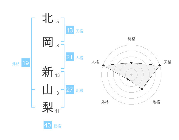 北岡 新山梨さんを姓名の画数から五運を鑑定