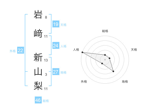 岩﨑 新山梨さんの地格は27画の3点