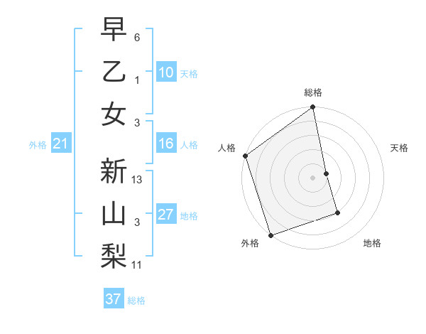 早乙女 新山梨さんを姓名の画数から五運を鑑定
