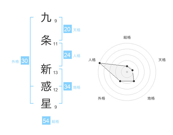 九条 新惑星さんの総格は54画の1点!