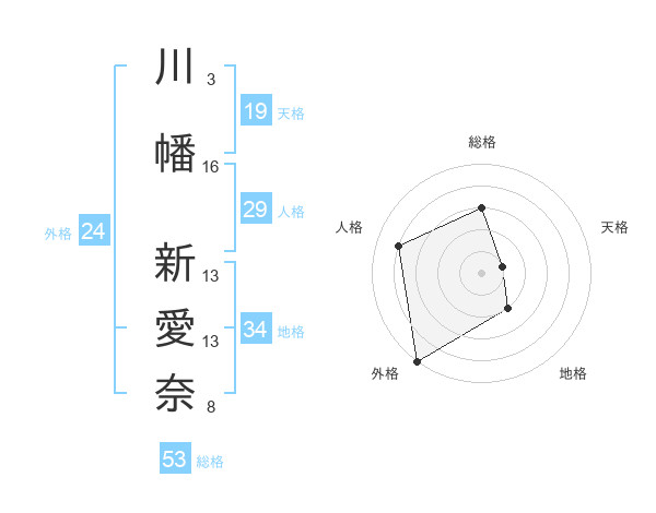 川幡 新愛奈さんの総格は53画の3点!