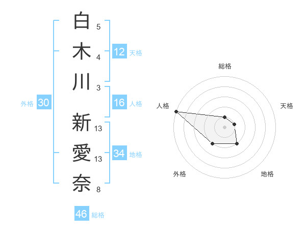 白木川 新愛奈さんを姓名の画数から五運を鑑定