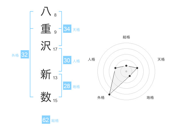 八重沢 新数さんを姓名の画数から五運を鑑定