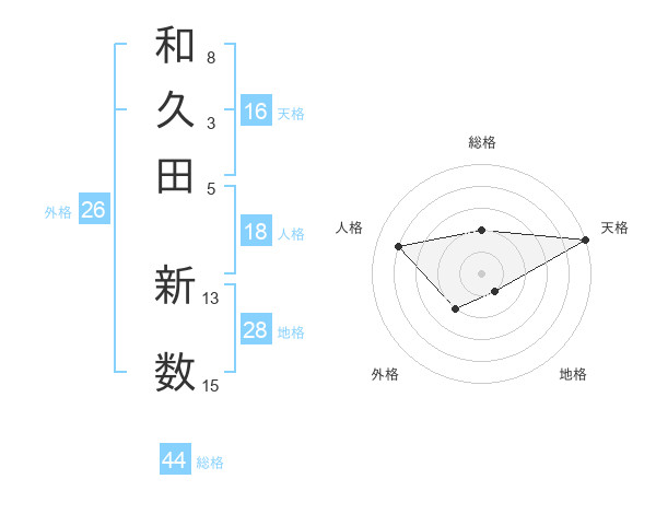 和久田 新数さんの天格は16画の5点!