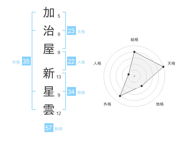 加治屋 新星雲さんを姓名の画数から五運を鑑定