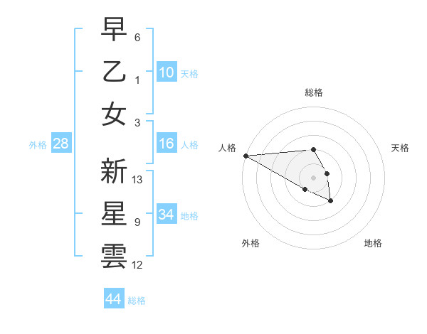 早乙女 新星雲さんの総格は44画の2点!