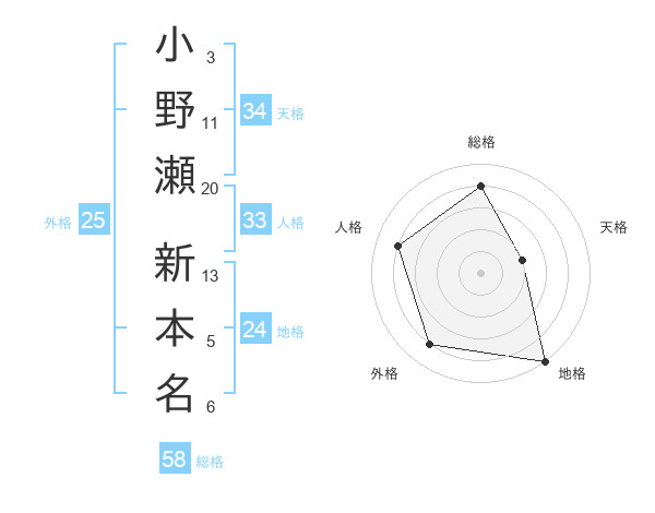 小野瀬 新本名さんを姓名の画数から五運を鑑定