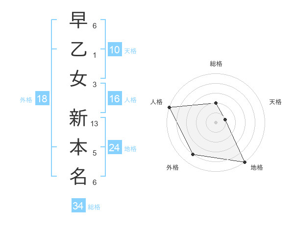 早乙女 新本名さんの総格は34画の2点!