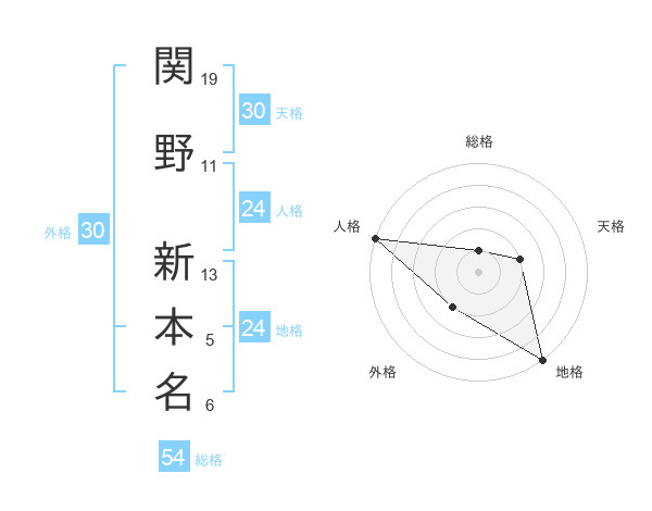関野 新本名さんの外格は30画の2点!
