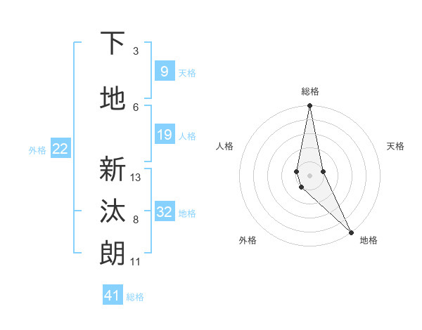 下地 新汰朗さんを姓名の画数から五運を鑑定