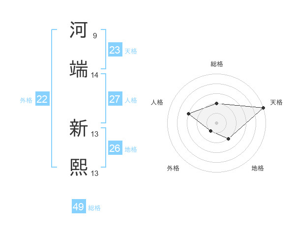 河端 新熙さんの総格は49画の2点!