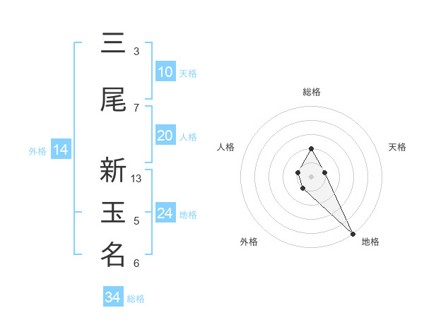 三尾 新玉名さんの総格は34画の2点!