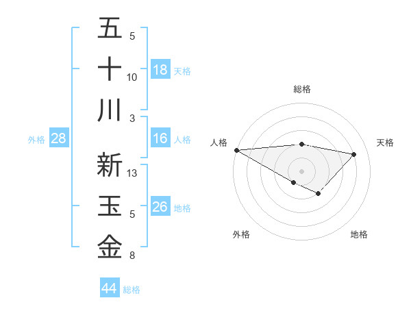 五十川 新玉金さんを姓名の画数から五運を鑑定