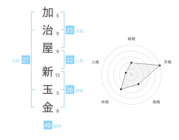 加治屋 新玉金さんを姓名の画数から五運を鑑定