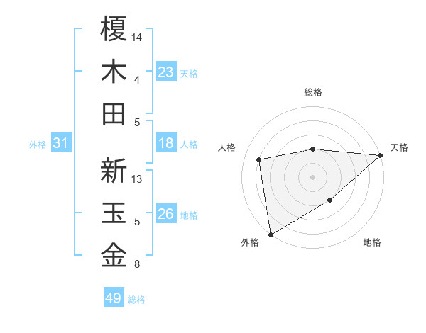 榎木田 新玉金さんの天格は23画の5点!