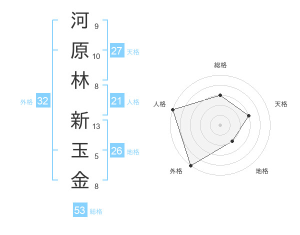 河原林 新玉金さんを姓名の画数から五運を鑑定