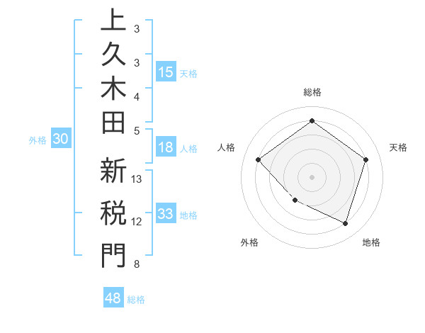 上久木田 新税門さんの天格は15画の4点!