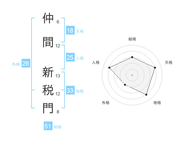 仲間 新税門さんを姓名の画数から五運を鑑定