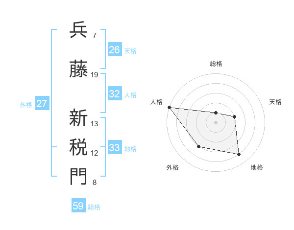 兵藤 新税門さんを姓名の画数から五運を鑑定