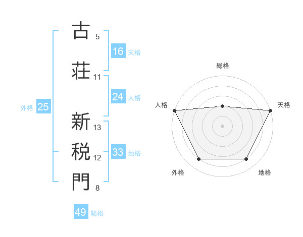 古荘 新税門さんを姓名の画数から五運を鑑定