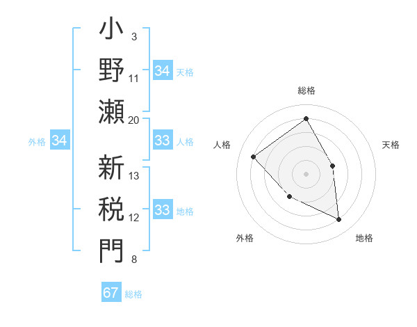 小野瀬 新税門さんを姓名の画数から五運を鑑定