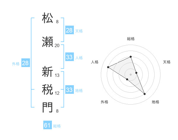 松瀬 新税門さんを姓名の画数から五運を鑑定