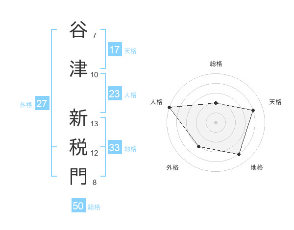 谷津 新税門さんの総格は50画の2点!