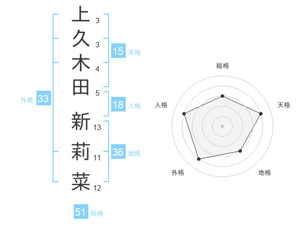 上久木田 新莉菜さんを姓名の画数から五運を鑑定