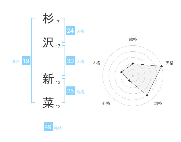 杉沢 新菜さんを姓名の画数から五運を鑑定