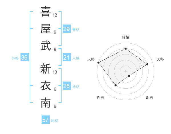 喜屋武 新衣南さんの天格は29画の4点!