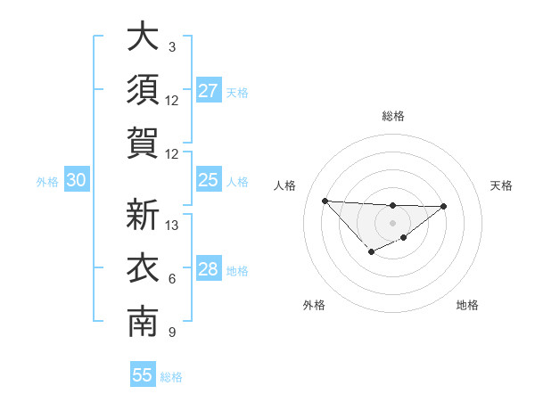 大須賀 新衣南さんの天格は27画の3点!