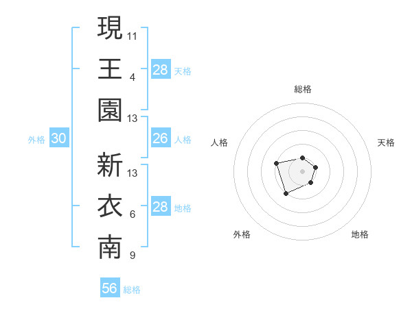 現王園 新衣南さんの天格は28画の1点