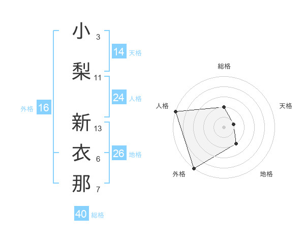 小梨 新衣那さんを姓名の画数から五運を鑑定