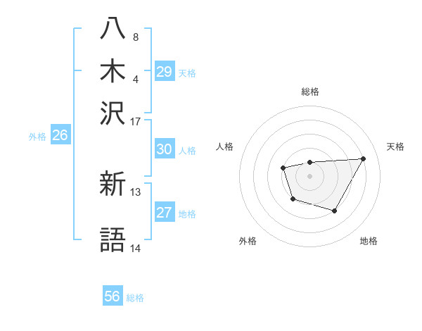 八木沢 新語さんを姓名の画数から五運を鑑定